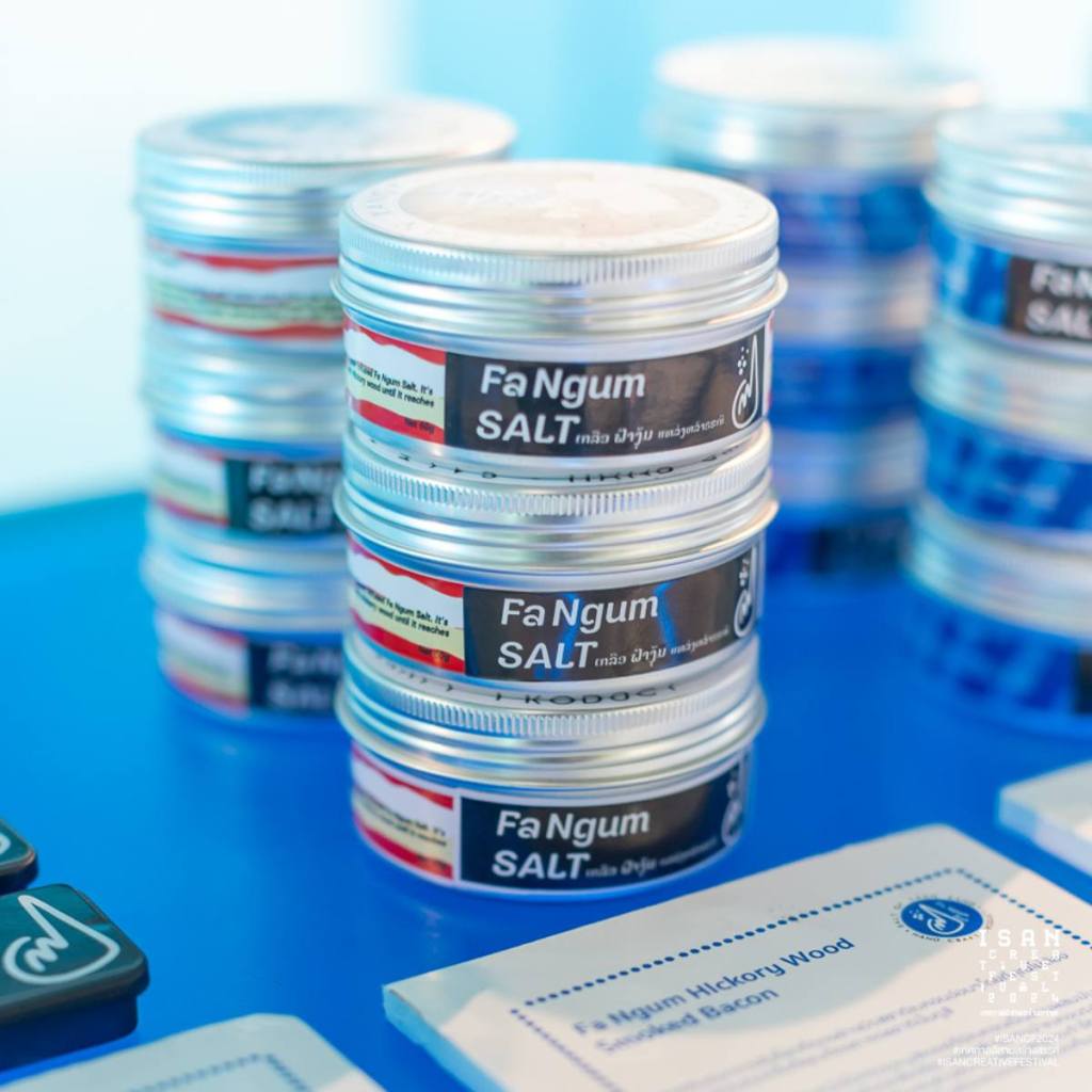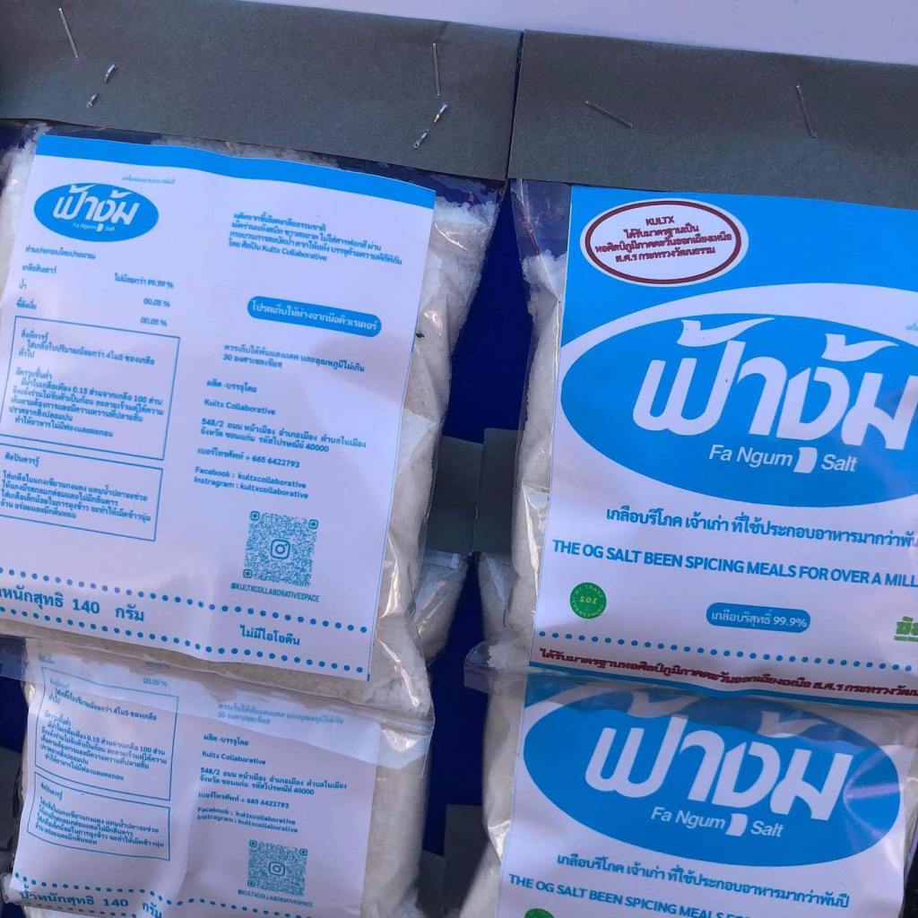 Fa Ngum Salt By Kultx Collaborative ‘Fa Ngum Salt’ The source of the world’s geology, from the legendary local salt pond. To elevate the level and create new value in art. “Fah Ngum Salt” is high quality salt from Bo Kathin, Ban Phai District, Khon Kaen Province. This is a salt pond that has been important for a long time. Reflects the lifestyle and local wisdom of the villagers in the area. It is worth promoting and maintaining in the community. Bo Kathin is an important source of salt production in the northeast. The resulting salt has just the right amount of saltiness. Sweet on the tip of the tongue Suitable for use in the household and food industry. TCDC Khon Kaen, 1st floor Creative Isaan Festival 2024