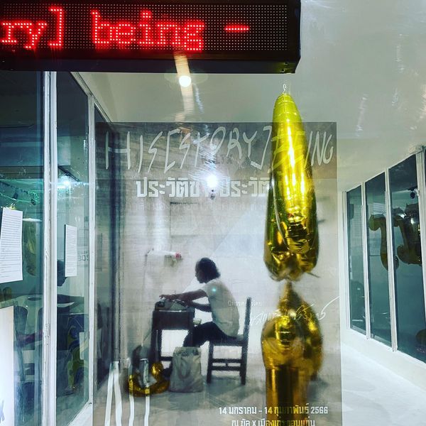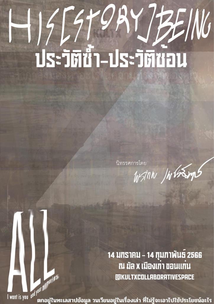 Exhibition His [story] being – history repeating, history repeating by Porntep Petchsumrit “The point being that good comparisons often come from the experience of strangeness and absences.” – Benedict Anderson, A Life Beyond Boundaries: A Memoir, Verso Books, 2018. Memories are too fragile and personal to walk in and ask people to tell, to remember theirs. It can be difficult to find the right way to access those memories. During the period I was embedded in Khon Kaen city, along with moving back and forth between Bangkok, Khon Kaen, and Lamphun, that story set did not arrive. “Swamp never walks to buffalo” this analogy was said to be heard while I stayed in the area. Going out to meet failure every day greatly decreases my energy and curiosity. Nothing to be found, except a dataset from the artist’s interest at the starting point. Those answers were slowly relayed to the artist. Telling story or request to thinking back – at some point, I heard, “There’s nothing memorable”. When the memories never arrived, the interplay between the narratives and the listeners who are strangers. What is the point of inserting myself into and stealing other people’s lifetimes to tell stories, find witnesses of past events, and transfer to the narrative, if it was not recorded or passed on?