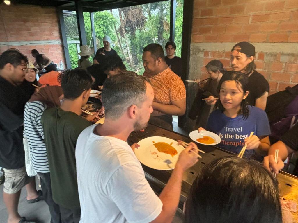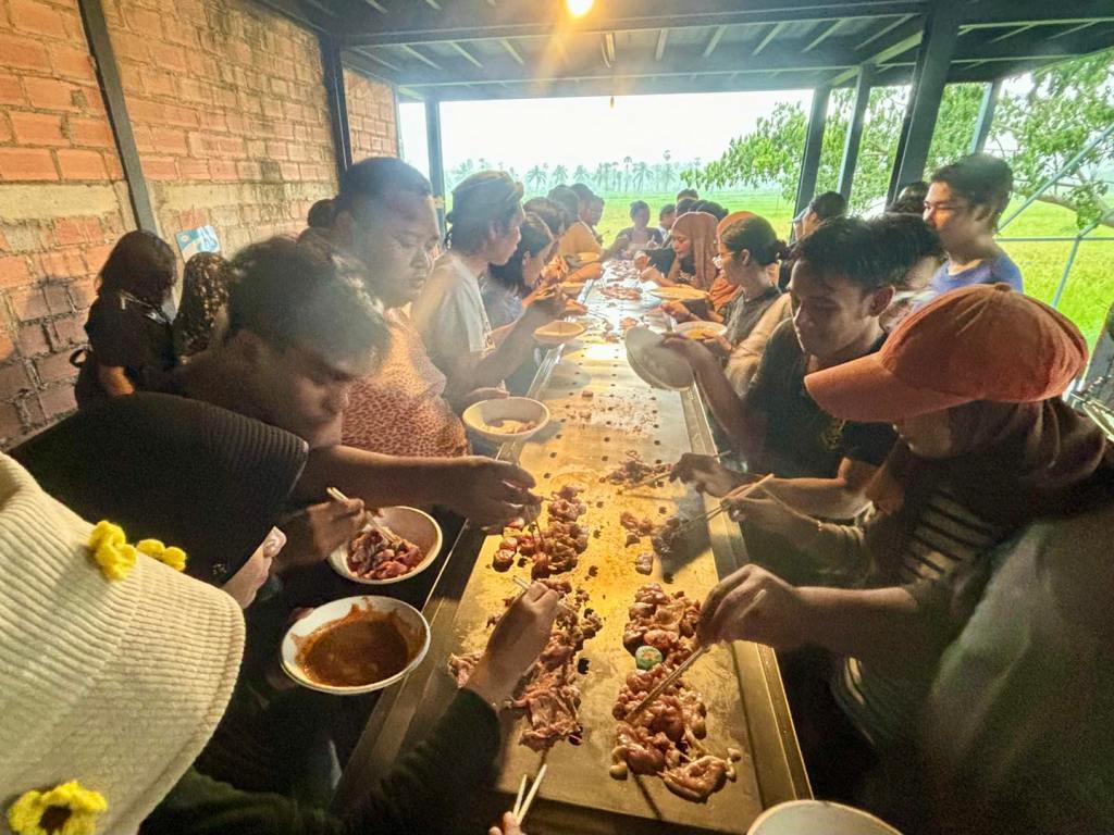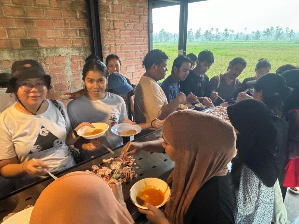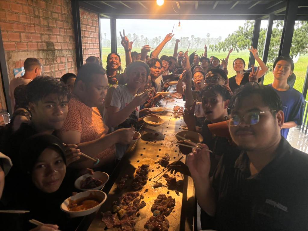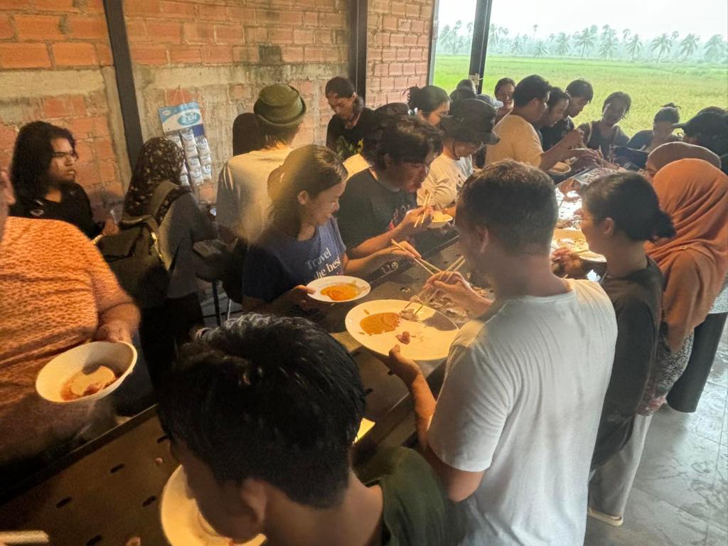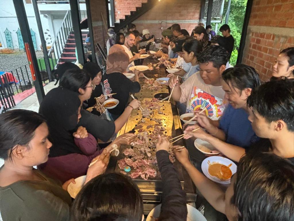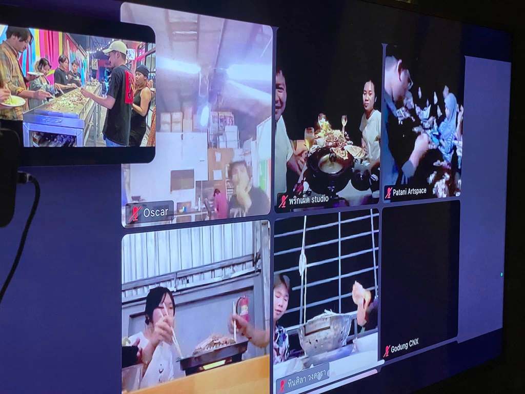 Now, this piece has traveled to the Kenduri Seni Patani festivalโa space embracing cultural, religious, and lifestyle diversity, much like a community festival. Kua Deaw Kan / Kenduri Seni Nusantara – One Tribe invites locals, artists, and attendees to join in, socialize, and enjoy Sin Dad. Adding color and flavor to the event, participants are encouraged to bring dipping sauces from their homes or regions, facilitating an exchange of tastes and stories. This cultural dialogue unfolds over a long halal Sin Dad grill, symbolizing the Friendship