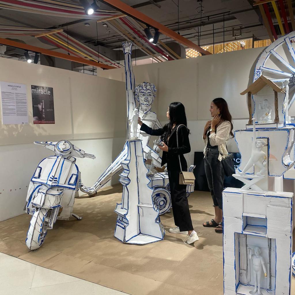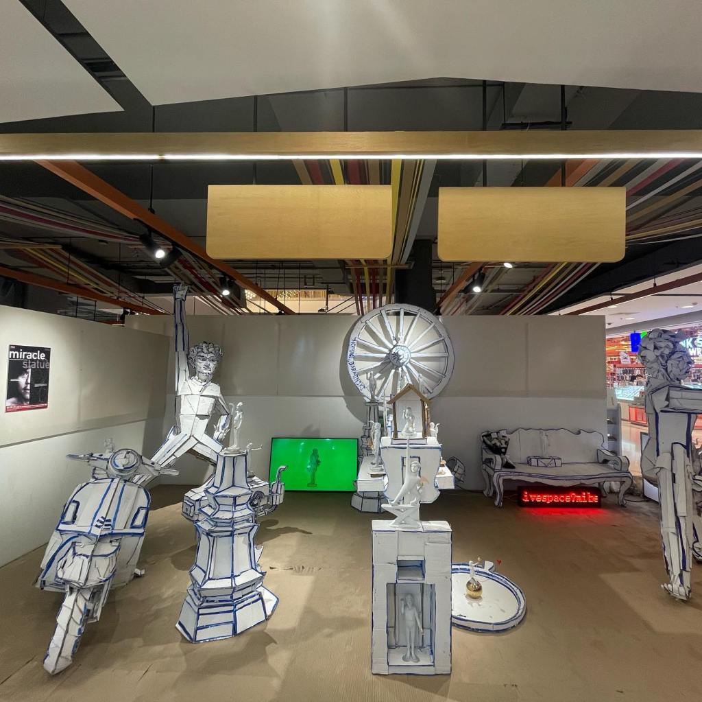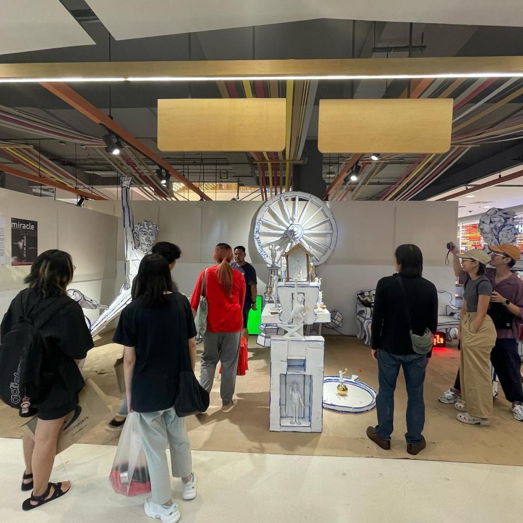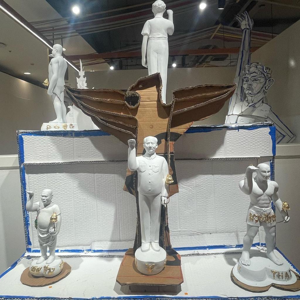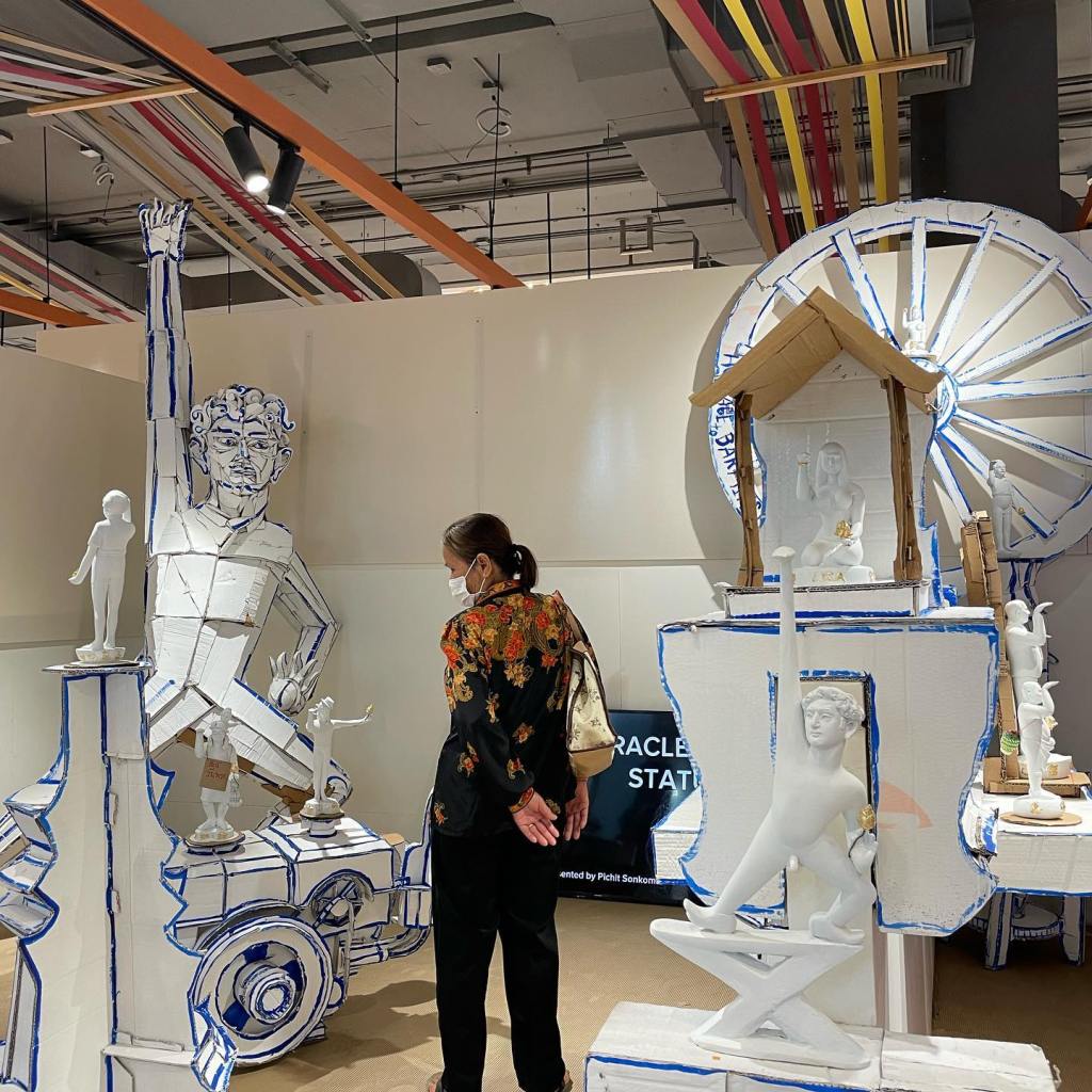 Miracle Statue By Pichit Sornkom Nang Kwak is a statue that we Thais are familiar with. The idea of โโNang Kwak Thai can miraculously beckon money, gold, and various things that people desire. “Nang Kwak can beckon prosperity to people.” โNang Kwak Thai can kwak Is it possible to be human?โ “Humanity Is it as valuable as money or something?โ “Humanity Will it make human life prosperous?โ If humanity were to arise, increase, and increase, what would be the positive effects on this world? The artist tried to find the answer and the possibility of this concept to use in creating art works and experimented to create a statue of Nang Kwak, which included statues of women and men of various races, including experimenting to create only the shape of hands and arms waving attached to the shape of a heart symbol. When it was reduced to only the shape of hands and hearts, the artistic content that the artist wanted could be seen as a picture that “the waving hand is a human hand, waving to look at the human heart.” This is the origin of the concept of the art exhibition “Miracle Statue”