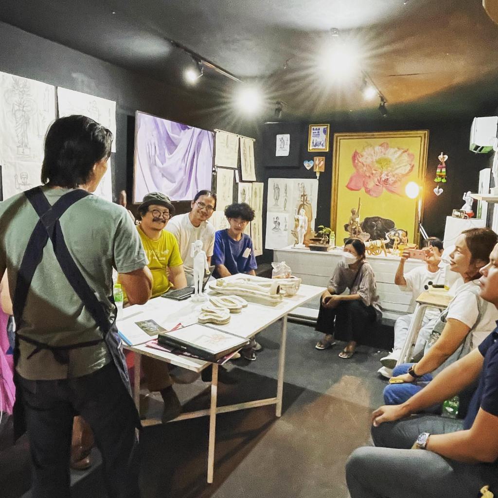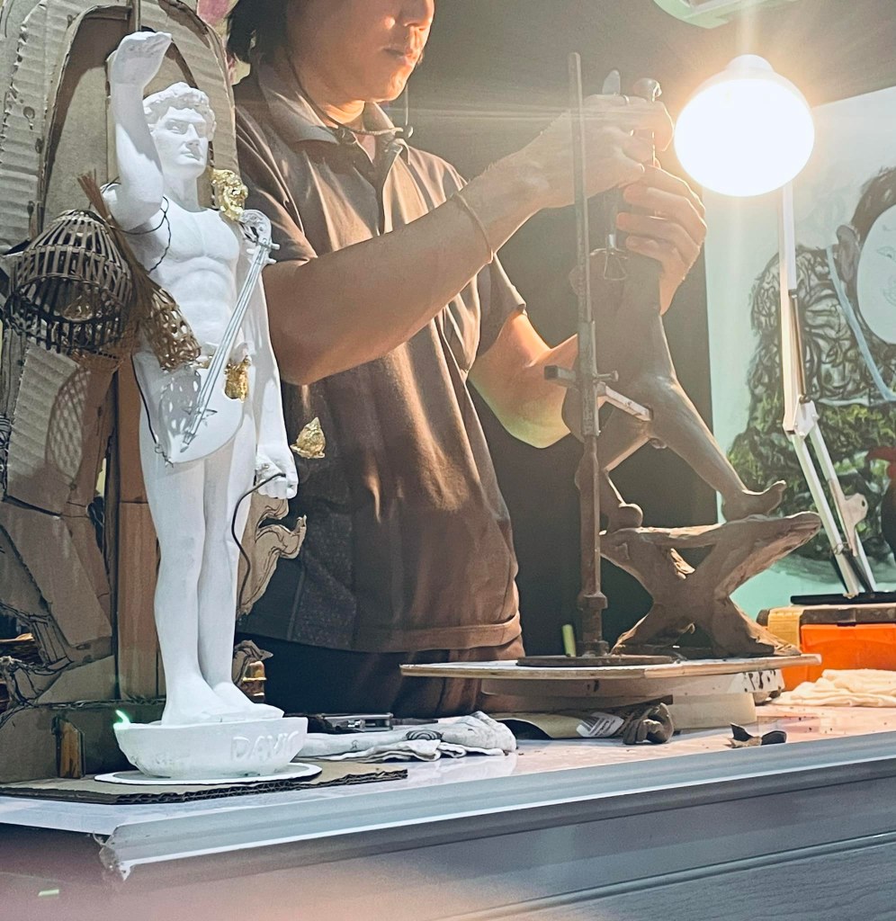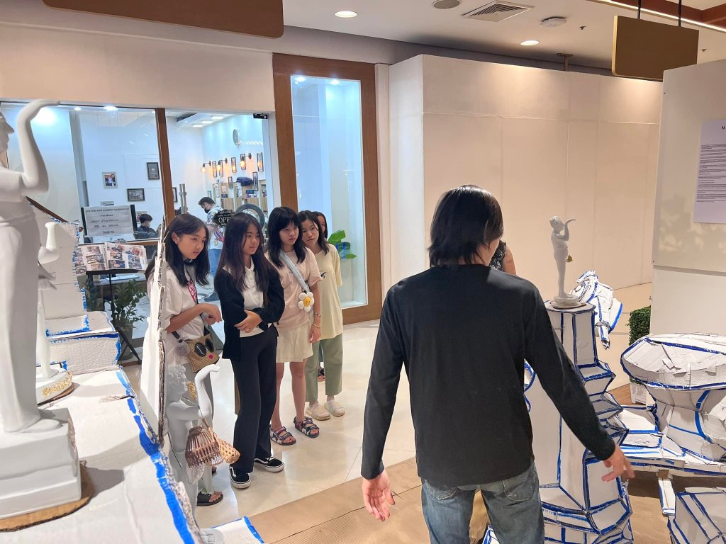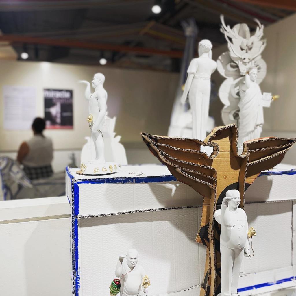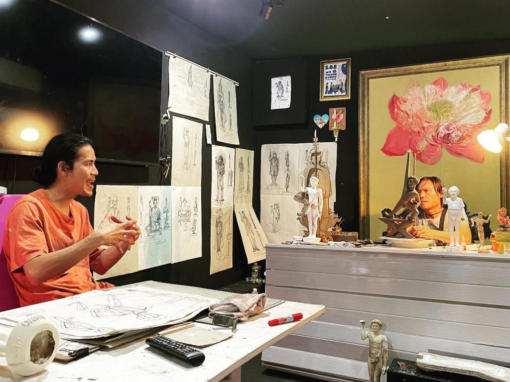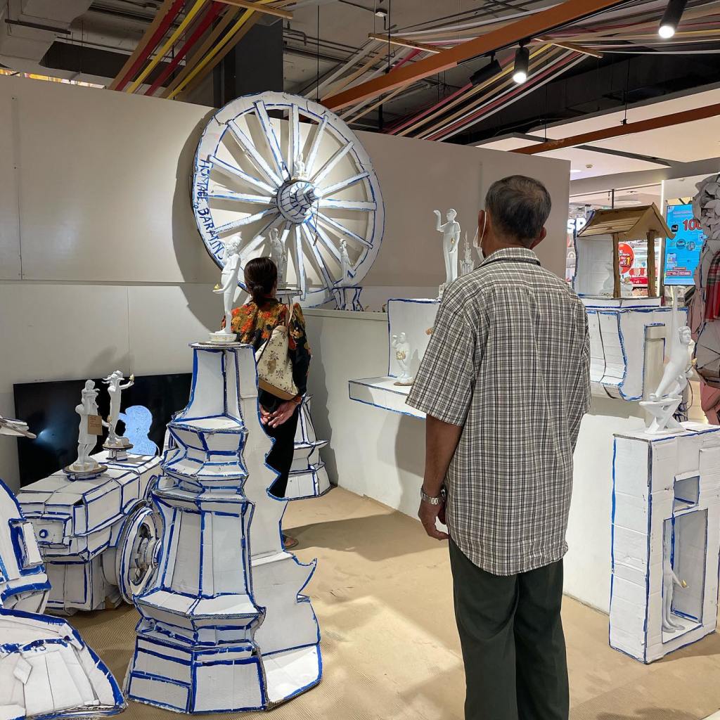Miracle Statue By Pichit Sornkom Nang Kwak is a statue that we Thais are familiar with. The idea of โโNang Kwak Thai can miraculously beckon money, gold, and various things that people desire. “Nang Kwak can beckon prosperity to people.” โNang Kwak Thai can kwak Is it possible to be human?โ “Humanity Is it as valuable as money or something?โ “Humanity Will it make human life prosperous?โ If humanity were to arise, increase, and increase, what would be the positive effects on this world? The artist tried to find the answer and the possibility of this concept to use in creating art works and experimented to create a statue of Nang Kwak, which included statues of women and men of various races, including experimenting to create only the shape of hands and arms waving attached to the shape of a heart symbol. When it was reduced to only the shape of hands and hearts, the artistic content that the artist wanted could be seen as a picture that “the waving hand is a human hand, waving to look at the human heart.” This is the origin of the concept of the art exhibition “Miracle Statue”