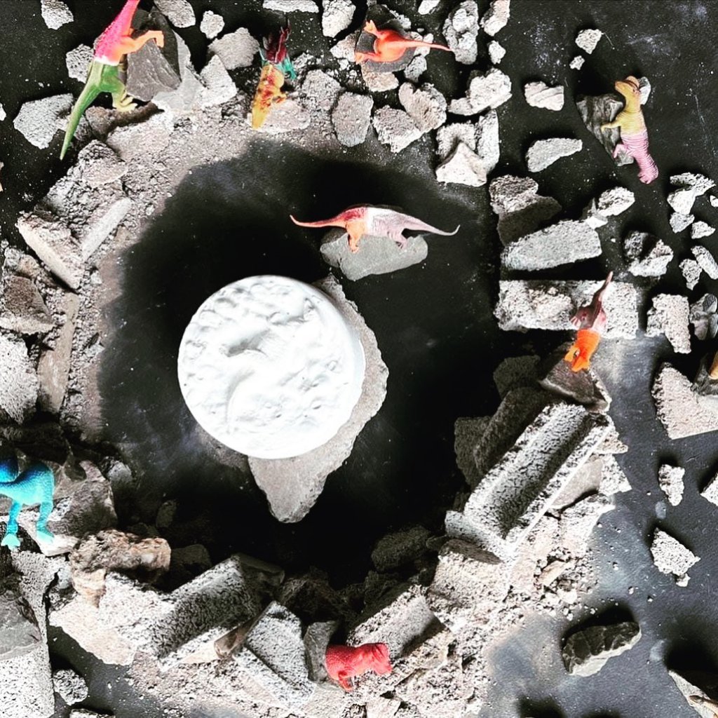 ศิลปินสนใจหลักฐานการมีชีวิตอยู่ของไดโนเสาร์ที่ชวนให้ทุกคนคิดถึงการเดินทางผ่านกาลเวลามายาวนานจนทิ้งร่องรอยให้เราเห็นว่าทุกอย่างล้วนแต่สามารถจะถูกลบล้างไปจากพื้นโลกนี้ได้ทั้งสิ้น จนกระทั่งชวนให้เราตระหนักถึงการลดความอหังการของมนุษย์ได้เช่นกัน