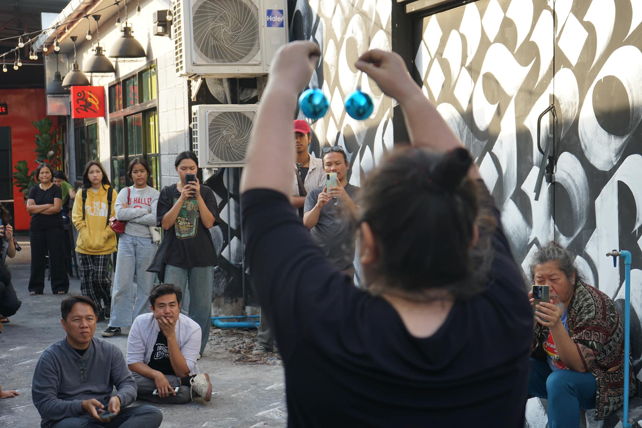 Live performance art by artists Pavana Reid, Nopawan Sirivejkul, Jadet Tongfueng, Chomphunut Phuttha, Mongkol Plienbangchang and Atittayaporn Saenpo .